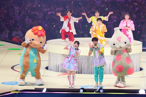 公開された予告編では、花田ゆういちろう、ながたまや、秋元杏月、佐久本和夢の4人をはじめ、「ファンターネ!」の仲間たち(みもも・やころ・ルチータ)や、「おとうさんといっしょ」のシュッシュ、ポッポ、ゆめ、まさとも、さらに懐かしの「ぐ〜チョコランタン」メンバーも登場。センターステージを駆け回る迫力のパフォーマンス、「ぼよよん行進曲」での逆バンジージャンプなど、子どもも大人も笑顔になれる圧巻のステージが映し出されている。特に、3面ライブスクリーン上映では、まるでステージの中に入り込んだかのような没入感を体験できる。
