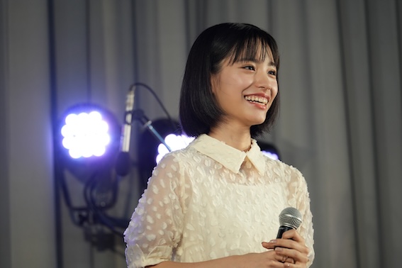 さらに、當真は撮影エピソードとして「同世代のキャストとのシーンはアドリブも多かったんです。手をつなぐ場面や相合傘のシーンは、自分たちで考えながら演じました」と振り返る。齋藤は「初めての恋愛役で緊張したけれど、萌役のあみちゃんとの時間はすごく幸せでした」と照れながら語り、生徒たちからは歓声が上がった。