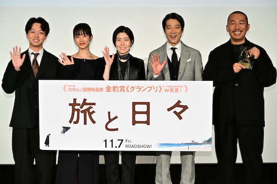 10月22日(火)、TOHOシネマズ 六本木にて、三宅唱監督の最新作『旅と日々』(11月7日公開)のジャパンプレミアが開催され、主演のシム・ウンギョン、共演の堤真一、河合優実、髙田万作、そして監督の三宅唱が登壇した。第78回ロカルノ国際映画祭で最高賞・金豹賞とヤング審査員特別賞をW受賞した本作の日本初上映を祝う舞台挨拶は、満席の観客の熱気に包まれた。