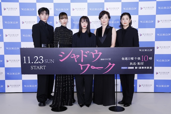 ドラマ放送開始を目前に控えた『連続ドラマW シャドウワーク』の完成報告会が11月17日、WOWOW放送センターにて開催された。DV被害に苦しむ女性たちの“究極のシスターフッド”を描くヒューマンミステリーで、多部未華子がWOWOW連続ドラマ初主演を務める。会場には多部をはじめ、桜井ユキ、川西拓実(JO1)、石田ひかり、寺島しのぶが登壇し、作品への想いや撮影裏話をたっぷりと語った。