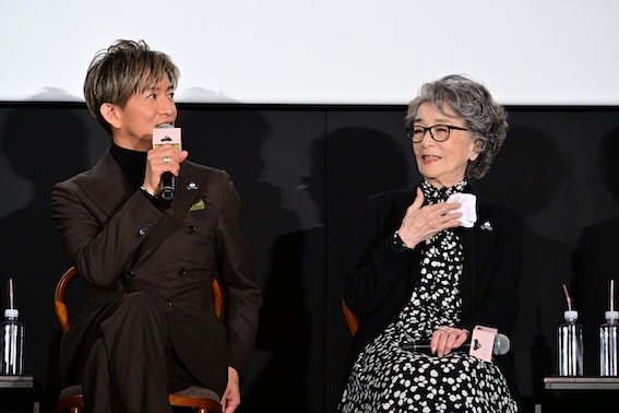 長時間の車内シーンで絆を深めた倍賞と木村。倍賞は木村について、「心を投げかけても受け止めてくれる人。本当に幸せでした」木村は倍賞について、「包み込んでくれる笑顔と、心地のいい魔法をかけてもらえるような方」と語り合い、最後には微笑みながらハイタッチ。会場からは歓声と拍手が湧き上がった。