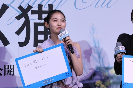 伊藤万理華は高杉との三度目の共演について「役の雰囲気は変わるけど、高杉さんは高杉さんという安心感がある」とコメント。深川は自身が演じた“かな子”について「分かりやすく言えば“あざとい”女性。でも母との関係など無意識の行動も多く、ぜひ人生を見届けてほしい」と語った。伊藤と深川が撮影の合間に仲良く出かけていたという裏話に、高杉が「へぇ……」と驚く姿は会場の笑いを誘った。