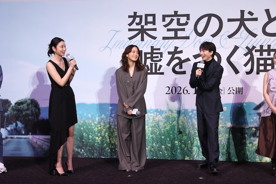 森ガキ侑大監督最新作『架空の犬と嘘をつく猫』の完成披露上映会が12月10日(水)、TOHOシネマズ 日比谷にて開催され、主演の高杉真宙をはじめ、伊藤万理華、深川麻衣、安藤裕子、向里祐香、安田顕、森ガキ侑大監督が登壇した。タリン・ブラックナイト映画祭で撮影賞を受賞した注目作だけに、会場は期待に満ちた空気に包まれた。