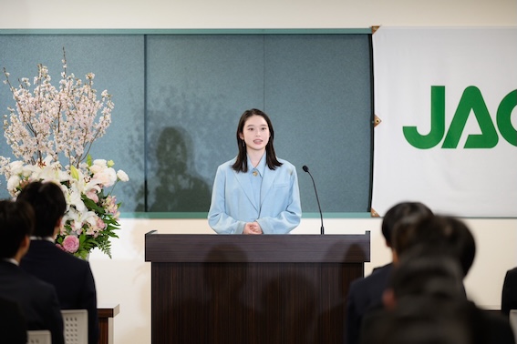 俳優の髙石あかりが、2026年4月1日に開催された株式会社ジャックスの入社式にサプライズゲストとして登壇し、新入社員に向けたトークセッションを行った。本イベントは、NHK連続テレビ小説『ばけばけ』放送終了後、髙石にとって初の公の場となり、会場は大きな注目を集めた。