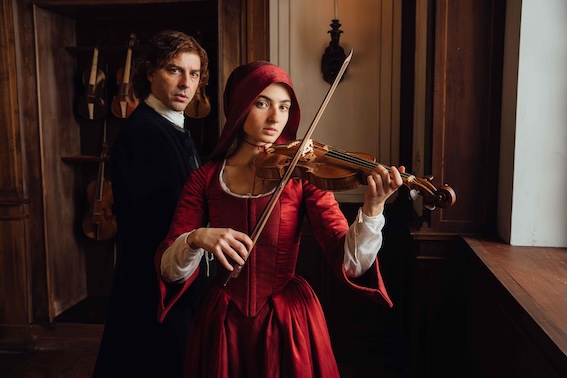 あわせて公開された場面写真では、ヴァイオリンを手に凛と立つチェチリアの姿や、彼女を見つめるヴィヴァルディの複雑なまなざし、そしてピエタ院での演奏シーンなどが収められている。